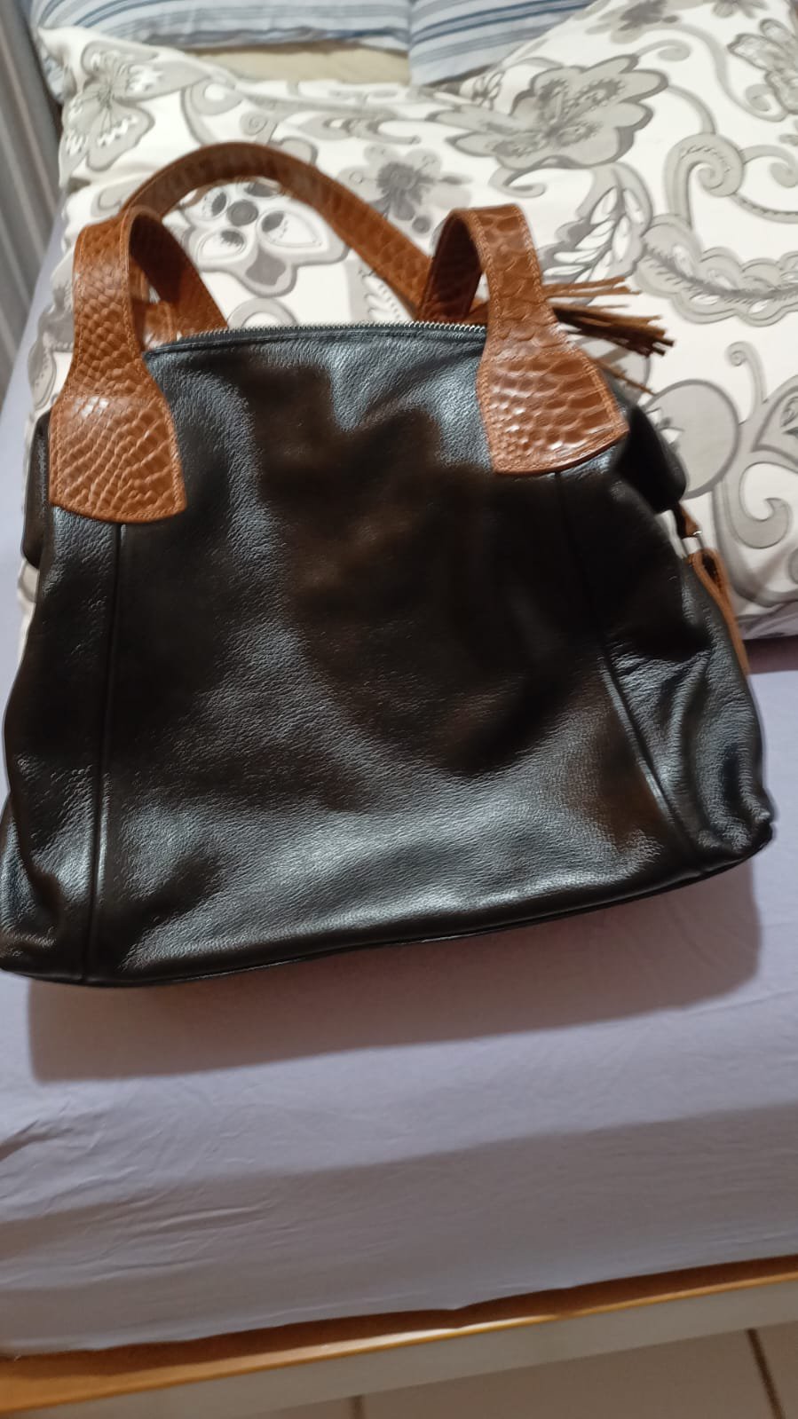 Bolsa grande ombro couro preta com alça caramelo ref:DM-14