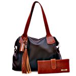 kit bolsa grande ombro preta com alça caramelo e carteira croco caramelo ref:DM-14B